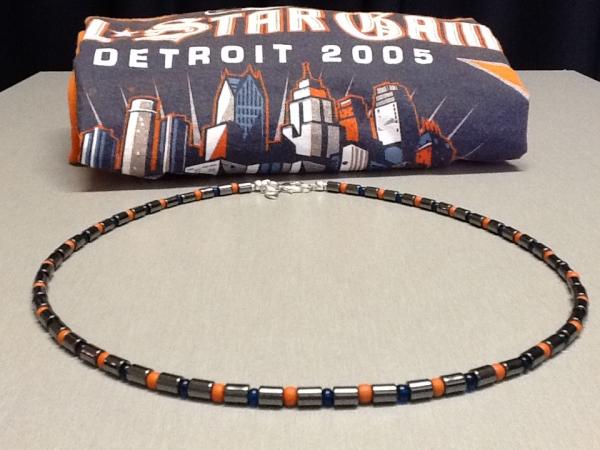 Working with Marla in designing my necklace was a pleasure. From ordering the length of necklace, color and shape of beads and confirming the quality of the clasp, Marla listened to my needs and put together a creation that I call baseball jewellery perfection. When Marla knew that I wanted a baseball necklace, her first question was what is my favorite team. When I told her the Tigers (yes…my baseball heart lies in Detroit), she got busy putting together a Tigers necklace. When I saw the pictures, I fell in love with it. She got the perfect shades of blue and orange, but complimented the piece with steely black beads that were larger than the others. Plus, she used a mix of round and rectangular beds, as I had requested something a little unique. When the package arrived, I instantly put it on and was blown away. I had waited years for the right necklace and it was finally arrived. For even the most selective consumer, Marla had come through in the clutch.